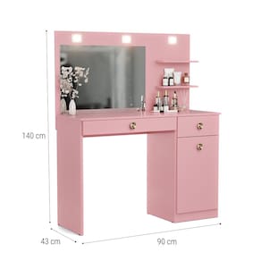 A Penteadeira Jolie com LED foi pensada para transformar o seu cantinho de beleza em um espaço prático, organizado e cheio de charme. Com design moderno e linhas delicadas, ela combina perfeitamente com quartos femininos, juvenis ou ambientes clean, trazendo conforto na rotina de cuidados pessoais.