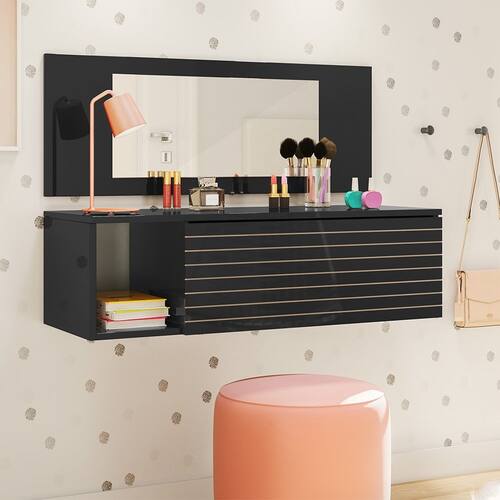 Características: Estrutura em MDP/MDF Pintura UV Gaveta com colméia organizadora Corrediças telescópicas Nicho decorativo Painel com espelho.