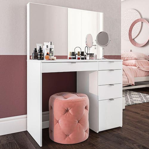 O(a) Penteadeira Linden 5 Gavetas com Espelho Branco - Politorno é produzido em MDP na escala de brilho Semi-Brilho, e possui um grau de dificuldade de montagem: Médio.