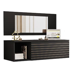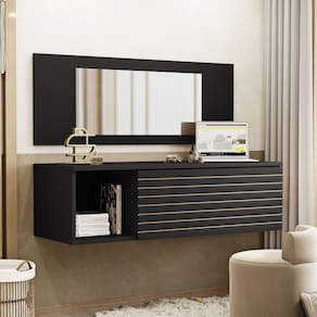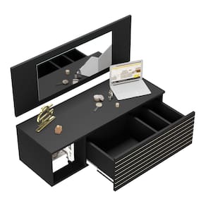 Penteadeira Para Maquiagem Jolly com Bancada Suspensa 01 Gaveta e Espelho Preto - Desk Design