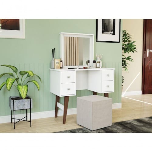 Penteadeira retrô MB 1009 da Móvel Bento, é uma ótima opção, possui 4 pé em madeira maciça, um amplo espelho, além de 4 gavetas. Compacto e extremamente funcional. COR - BrancoMATÉRIA PRIMA - ESTRUTURA EM MDP 15MM, PORTAS E GAVETAS MDP 15MM E COSTAS EM MDF 3MM ACABAMENTO - PINTURA UV MEDIDAS MONTADO (cm)ALT. - LARG. - PROF.134 - 92 - 45PESO TOTAL (Kg) - 28PESOSUPORTADO KG - 20 INSTRUÇÕES DE CUIDADOS - Antes de limpar recomenda-se que seja retirada toda a poeira com um espanador ou flanela seca para evitar riscos na superfície, após utilize um pano úmido em água, macio e limpo. OBSERVAÇÕES: As dimensões estão expressas na seguinte forma - Altura x Largura e Profundidade em cm. O peso suportado considera a carga distribuída igualmente pela peça. As imagens são ilustrativas e as cores podem sofrer variações de tonalidade. conforme o ajuste de configuração do monitor. Os objetos decorativos não estão inclusos. Marca Movel Bento Cor Branco Material Principal MDP Necessita Montagem Sim