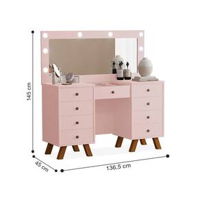 Essa Penteadeira conta com um design elegante e clássico, somando na decoração de seu quarto ou closet, com bastante espaço para organização pessoal. Conta com um largo espelho, gavetas laterais e uma gaveta central.