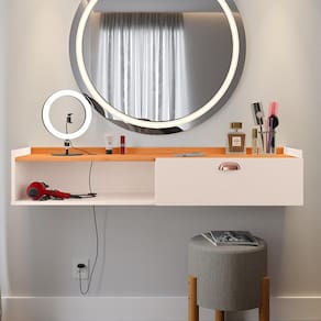 Transforme seu quarto com a penteadeira suspensa Decor, um móvel compacto e funcional, que combina organização e elegância. Ideal para otimizar o espaço, ela possui um nicho decorativo, uma porta com amplo espaço interno e um tampo espaçoso, perfeito para acomodar seus itens de beleza ou acessórios. Com um design moderno e minimalista, esta penteadeira é a escolha certa para quem busca um toque de sofisticação no ambiente.