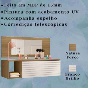 Penteadeira Suspensa Com Espelho 8400 Nature Branco Plla Nature Branco