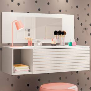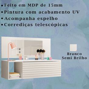 Penteadeira Joy PLLA, estilo e modernidade para decorar a sua casa. Produzida em MDP/MDF de 15 mm, pintura UV, conta com 01 nicho, 01 gaveta com 03 repartições, painel com espelho. Penteadeira Joy PLLA, te possibilita armazenar os mais distintos objetos. Este móvel chegará em sua casa separado em 01 volume.