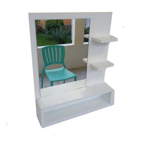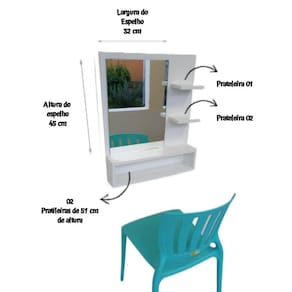 Nunca foi tão fácil orgazina sua maquiagem no dia a dia.Penteadeira Suspensa de Parede Jasmine foi desenvolvida com materiais de primeira qualidade oferecendo resistência e durabilidade, confeccionada com material em 100% MDF, inclui espelho reforçado que vai auxiliar no seu dia a dia na hora de fazer a sua maquiagem Além disso, esse produto conta com 4 pratileiras resistentes para ajudar na organização diária dos seus prditos. Esse móvel charmoso e elegante vai trazer mais beleza e funcionalidade para decoração do seu quarto O produto é entregue montado, fácil de instalar100% MDF Inclui espelho. Produto é entregue montado Fácil instalação. Inclui parafusos + buchas para instalação do produto. Inclui manual de auxílio para instalação.Medidas: Espelho: 32 x 45 Largura x Altura Molduras:61 cm de largura51 cm de altura Prateleiras laterais: 2 medido 10 cm de largura Prateleiras inferiores: 2 medido 51 cm de largura Produto entregue montado, instalação simples. Marca: Marcenaria Sales & Alves