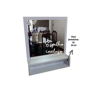 Espaço entre as prateleiras: 10 cm espelho: 40 x 45 cm ou 45 40 cm ou 40 x 40 cm largura x altura Obs: pode haver variação em questão de cm's no tamanho do espelho