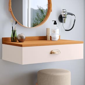Penteadeira Suspensa Gloss Mesinha Bancada Gaveta Organizadora Puxador Concha Quarto Camarim Off White/Cinamomo - Lojas RPM - Off White