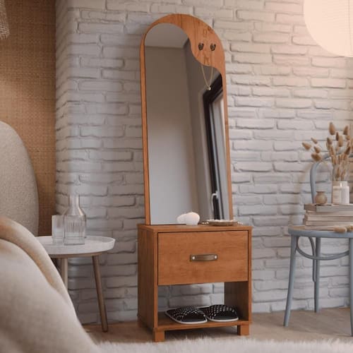 Penteadeira Toucador Monaco Freijo Se você está em busca de um móvel que alie praticidade, elegância e charme, a Penteadeira com Espelho 1 Gaveta Branco é a escolha perfeita para você. Dimensões do produto montado: Altura: 148 cm Largura: 45 cm Profundidade: 33 cm Características: - Material MDP/MDF - Cor freijó - Gaveta - Nicho - Pés - Espelho Itens Incluso: 01 Penteadeira. Kit completo para montagem. Manual de montagem. Observações: - Não nos responsabilizamos pela montagem do produto. - Sistema de Montagem: Parafusos, Cavilhas e Tampos. - É recomendado que a montagem seja feita por um profissional qualificado. - As imagens indicam uma sugestão de uso e são apenas ilustrativas, os objetos decorativos não estão inclusos. - Ao iniciar a montagem, forre o chão com o papelão das embalagens para proteger as peças de arranhões. Instruções e Cuidados: Limpar com pano seco, manter em lugar livre de umidade, ao abrigo de exposição direta ao sol. MARCA: CASAH | QUANTIDADE DE GAVETAS: 1 | QUANTIDADE DE PRATELEIRAS: 1 | PESO PRODUTO COM EMBALAGEM (KG): 14 | PESO DO PRODUTO (KG): 14 | GARANTIA DO FABRICANTE: 3 | QUANTIDADES DE CAIXAS DE EMBALAGEM: 1 | COR PREDOMINANTE: FREIJO | CORES DO PRODUTO (FILTRO DE CORES): FREIJO | DESCRIÃ?Ã?O DO TAMANHO: 148X45X33 | MATERIAL PRINCIPAL: MDP/MDF | ESTADO DE ORIGEM: SP | INSTRUÃ?Ã-ES/CUIDADOS: Limpar com pano macio e seco, nÃo utilizar produtos abrasivos. | PRODUTO PRECISA DE MONTAGEM?: Sim, a montagem à facil mas sugerimos a contrataÃÃo de um montador profissional para a montagem do produto. NÃo nos responsabilizamos por danos causados no ato da montagem. | ALTURA DO PRODUTO (CM): 148 | LARGURA DO PRODUTO (CM): 45 | COMPRIMENTO DO PRODUTO (CM): 33 | ALTURA DO PRODUTO COM EMBALAGEM (CM): 8 | COMPRIMENTO PRODUTO COM EMBALAGEM (CM): 101 | LARGURA PRODUTO COM EMBALAGEM (CM): 43 | PRODUTO: PENTEADEIRA | QUANTIDADE DE NICHOS: 1 | POSSUI ESPELHO: SIM