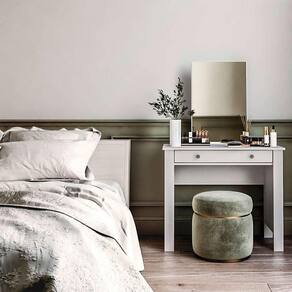 Que tal a Penteadeira Victoria?Nada como ter espaços bem pensados e equipados para facilitar sua rotina diária, não é? Para montar o closet ou incrementar seu quarto, conte com a Penteadeira Victoria. Companheira nos momentos que você for se arrumar para sair, ela possui bom espaço de tampo para acomodar produtos como maquiagens, perfumes e pincéis, além de uma gaveta, que pode receber itens menores e deixar tudo sempre arrumadinho - sem contar o espelho, que te dá aquela mãozinha na hora de montar o look certo para cada ocasião. Com estrutura tradicional, coloração neutra e charmosos puxadores redondos, essa peça vai ficar incrível na sua decoração, pois é fácil de combinar com tudo, inclusive com o puff ou cadeira que você adquirir para complementar o uso! Marca: Elaborart Design Mobiliário