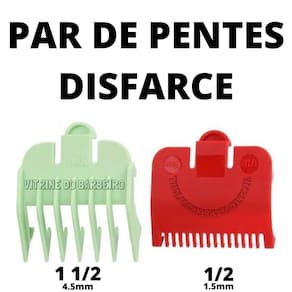 KIT PENTE DE DISFARCE 0,5 E 1,5 PARA MÁQUINAS DE CORTEPentes de excelente qualidade, compatível com todas as Máquinas de Corte:O Pente de Disfarce 0.5 e 1.5mm é especialmente feito para cortes mais precisos de fade o tão famoso degrade.- Faz também as linhas de disfarce mais facilmente.Excelente para quem já possui as máquinas Kemei, e quer melhorar ainda mais a experiência e a qualidade.Conteúdo do pacote:1 x Pente de 0.51 x Pente de 1.5===================================================================Todos nossos produtos com 30 dias de garantia.Todos nossos produtos são a pronta entrega. Após a confirmação do pagamento seu pedido é enviado em até 24h.Temos Satisfação em te Oferecer Produtos de Alta Qualidade!Todas as fotos de nossos produtos são reais.Adicione seus produtos no carrinho e Boas Compras!!!Qualquer dúvida estamos á disposição!Temos Satisfação em Atendê-lo (a).