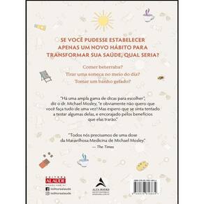 SE VOCÊ PUDESSE ESTABELECER APENAS UM NOVO HÁBITO PARA TRANSFORMAR SUA SAÚDE, QUAL SERIA? Comer beterraba? Tirar uma soneca no meio do dia? Tomar um banho gelado? “Há uma ampla gama de dicas para escolher”, diz o dr. Michael Mosley, “e obviamente não quero que você faça tudo de uma vez! Mas espero que se sinta tentado a testar algumas delas, e encorajado pelos benefícios que elas trarão.” “Todos nós precisamos de uma dose da Maravilhosa Medicina de Michael Mosley.”— The Times