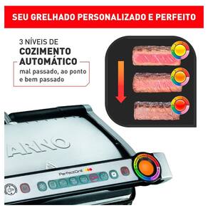 O Perfect Grill é a escolha ideal para grelhados perfeitos e personalizados. Com 3 níveis de cozimento automático (mal passado, ao ponto e bem passado) e medição automática de espessura, ele ajusta o preparo para resultados precisos. Suas 6 funções pré-definidas otimizam o preparo de carnes, peixes, frangos, hambúrgueres, linguiças e sanduíches, além da função descongelar. O pré-aquecimento inteligente avisa o momento certo para iniciar o preparo. Fácil de limpar, possui revestimento antiaderente e coletor de gordura removível. Com acabamento premium em aço inox, une sofisticação e praticidade na cozinha.