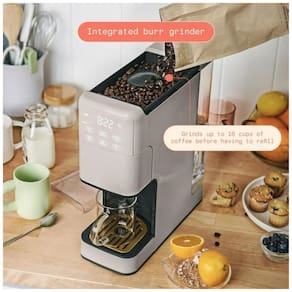 A Perfect Grind Porcini Taupe é uma máquina de café drip single serve com moedor burr integrado para preparos de 177 a 473 ml (6-16 oz) usando grãos inteiros ou pó pré-moído, oferecendo configurações de força regular, bold ou over ice e reservatório removível de 1,89 L para múltiplos ciclos diários.