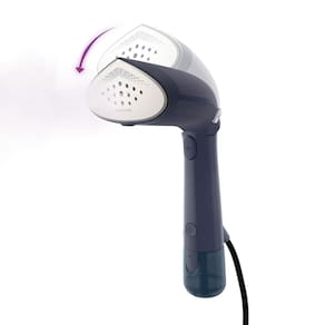 Liberdade de uso Desistiu de usar aquela roupa que você imaginou usar um dia antes e a que você quer vestir ainda está no cabide amassada? Sem problemas para o Perfectcare Hand Steamer! Com sua luva térmica para proteção extra, você tem a segurança para desamassar suas roupas diretamente no cabide. Mas se você deseja um resultado ainda mais alinhado, Hand Steamer é 2 em 1! Sua inovadora cabeça ajustável permite a vaporização horizontal sem pingar ou molhar suas roupas. E para passar vincos, seu formato em V alcança com precisão mesmo em áreas mais difíceis.
