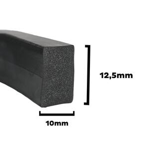 A Borracha Esponjosa Vedação Macia Resistente 12,5X10Mm - 15M pode ser utilizada para vedação de portas, janelas e armários, além de ser utilizada como amortecimento e absorção de impactos e vibrações em diversas aplicações. Essa borracha possui 15 metros de comprimento e está disponível na cor preta.