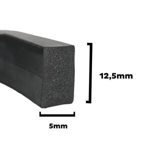 Especificações Técnicas: - Tamanho/modelo: Perfil de borracha esponjoso 12,5mmx5mm - 5 metros - Material: Borracha - Cor: Preto - Comprimento: 5 metros - Altura: 15 mm - Largura: 6 mm - Peso: 0.145 kg - Acessórios incluídos: Não - Garantia do fabricante: 3 meses