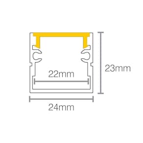 Perfil De Sobrepor Para Fita Led Taschibra Apex 24 Com 2 Metros Dimensões AxLxP (mm): 23x2000x24 Garantia: 90 dias junto ao fabricante Material: Alumínio e plástico Led Incluso: Não Instalação: SobreporAcabamento/Tampa: Não Itens Inclusos 1 Perfil