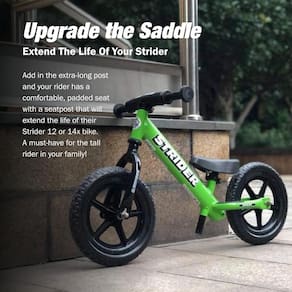 Pronto para atualizar o selim? Confira o assento Strider Performance. Adicione o poste extra longo e seu ciclista terá um assento confortável e acolchoado com um espigão de selim que prolongará a vida útil da bicicleta. O assento Strider Performance não requer nenhuma ferramenta para montagem ou ajuste e é um item essencial para o ciclista alto da sua família!