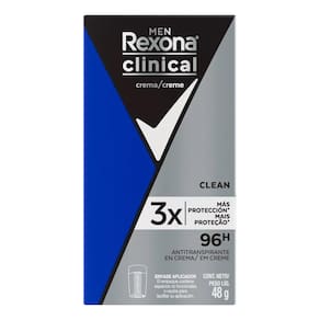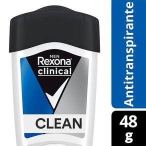 - Desodorante Antitranspirante Rexona Men Clinical AZUL. - Protege 3x mais contra a transpira??o excessiva que um antitranspirante comum. - M?xima prote??o de Rexona. - Tecnologia TRIsolidTM. - 20% tetraclorohidrex de alum?nio/zirc?nio GLY. - Dermatologicamente testado.