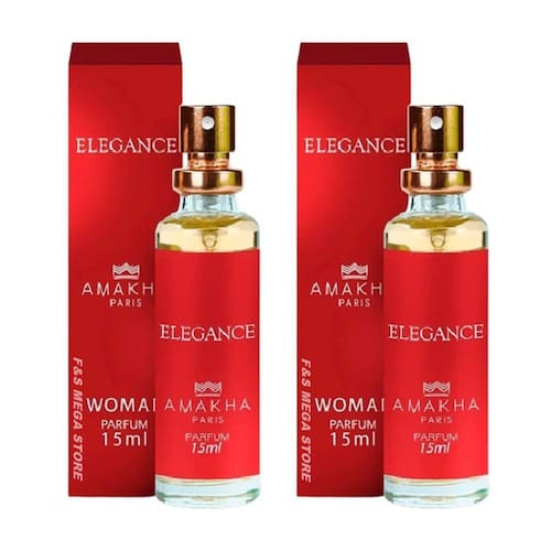 Adquira agora mesmo o Kit 2 Perfume Feminino Elegance Vermelho Amakha Paris 15ml e desfrute de fragrâncias irresistíveis e de alta qualidade.