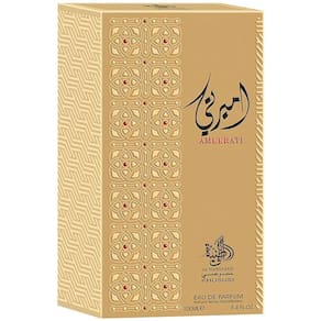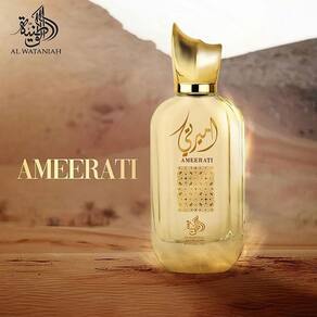 Ameerati Eau De Parfum de Al Wataniah Khususi com notas cítricas e almíscar complementadas por aromas frescos e amadeirados. Este perfume traz para você a experiência autêntica de ser um verdadeiro Emirati enquanto este perfume envolve você e o anima, mostrando seus sonhos de areia dourada.