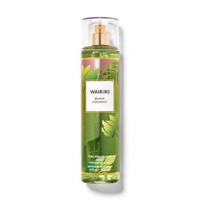 Bath & Body Works Waikiki Beach Coconut Fine Fragrance Mist, 8 Fl Oz - Coleção Signature. Fragrância: uma mistura tropical de coco de praia, maracujá rosa, brisa de água salgada, bambu fresco e madeiras branqueadas pelo sol. Visão geral: Nossa névoa de fragrância Waikiki Beach transportará você instantaneamente para uma ilha paradisíaca. Mergulhe ou borrife levemente sua fragrância favorita, de qualquer maneira você vai se apaixonar à primeira névoa! Nossa garrafa cuidadosamente trabalhada e bomba sofisticada oferecem ótima cobertura enquanto a névoa de aloe condicionador nutre a pele para a maneira mais leve e refrescante de fragrância!