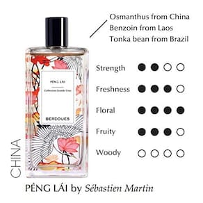 O aroma âmbar, almiscarado e doce de Peng Lai é um perfume floral fascinante para mulheres da casa de Parfums Berdoues. Lançado em 2018, este perfume abre com notas de osmanthus, tangerina, rosa, pêssego e benjoim. A base é preenchida com notas de almíscar branco, violeta, fava tonka, baunilha e violeta.