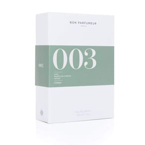 Um frescor marcante e revigorante, 003 é uma colônia com aroma vegetal. No início, esta fragrância oferece generosas notas mentoladas e picantes. Dando a alguém um desejo repentino e louco por um mojito! Suas notas delicadas e frescas de chá verde trazem uma leveza inebriante. As notas realçam as flores brancas pulverulentas. É uma colônia que esconde sua diversão amadeirada, arejada e macia. As notas de Elemi realçam todas as facetas desta fragrância viciante, tanto picante quanto amadeirada. Uma viagem olfativa muito refrescante.