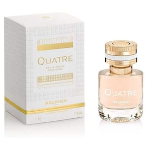Quatre Pour Femme, uma interpretação olfativa moderna e ousada da famosa e luxuosa coleção de anéis da casa. Um Eau de Parfum floral frutado amadeirado, brilhante e elegante.