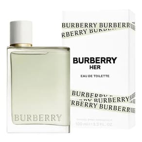 Burberry Her Eau de Toilette, o perfume de espírito livre de Burberry. Uma fragrância gourmand que equilibra alegres notas frutadas sobre uma secagem viciante. Para a mulher moderna ousada que adora aventuras. Essa fragrância é uma mistura divertida de peônia em flor, notas de saída de pêra verde, morango, groselha preta e pimenta rosa.