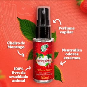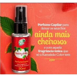Modo de usar: Borrife o perfume Moranguinho no ar e atravesse a nuvem do produto ou aplique nos fios com uma distância de 15 centímetros do cabelo. Recomenda-se usar no cabelo seco e já finalizado, para uma maior fixação. Não indicado passar no couro cabeludo. Caso o perfume seja aplicado muito próximo aos fios, pode correr o risco de manchar. Marca: Kamaleao Color