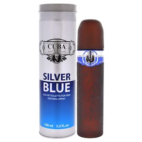 Spray de água de toilette Cuba Silver Blue para homens, 3,3 onças, marrom - Cuba Paris sempre oferece produtos da melhor qualidade, sejam novos lançamentos ou clássicos de todos os tempos - Esta fragrância combina notas amadeiradas, florais e almiscaradas em um buquê distintamente energético - As notas principais de tangerina e toranja são sustentadas por sândalo e madeiras de ferro