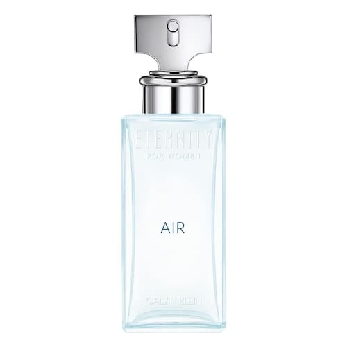 Calvin Klein Eternity for Women Air Eau De Parfum, 3,4 ml de onça — As notas principais deste perfume são toranja ácida, groselha preta picante e notas ozônicas, seguidas por peônia fresca, lírio brilhante do vale e pera suculenta que compõem as notas médias. - A base é almíscar sensual, cedro aromático e âmbar quente e salgado, equilibrando e sustentando o resto da fragrância. - Fresco e nítido, esse perfume é perfeito para uso diurno em climas quentes.
