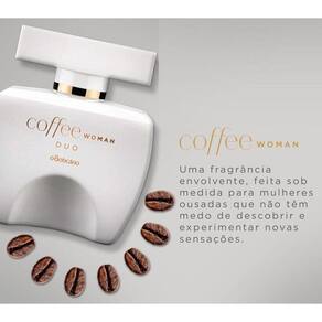 Perfume Feminino Desodorante Colônia 100ML Coffee Woman Duo Coffeewoman Duo Desodorante Colônia 100mlAs notas cremosas do Leite harmonizam com o contraste e amargor do Café. Em CoffeeWoman Duo Desodorante Colônia, além da mistura entre Café com Leite, a fragrância combina frutas negras e flores provando que os opostos. O resultado Uma mistura tanto para quem usa, quanto para quem sente. Conteúdo:- Perfume Desodorante Colônia Feminino 100ML CoffeeWoman Duo Imagem meramente ilustrativa. Enquanto durarem os estoques, você poderá receber o produto com a embalagem antiga.