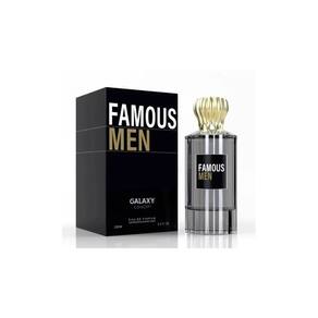 O Perfume Famous Men, de Galaxy Plus Concepts, traz notas estimulantes de Absinto, Anis e Erva-Doce. No coração, explosivas notas de Lavanda. Para o fundo, Baunilha Negra e notas sensuais de Almíscar. Uma combinação surpreendente e irresistível para se destacar por onde passa.