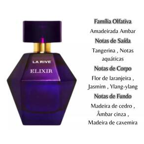 O Perfume La Rive Elixir é uma fragrância que revela o mistério e a sedução em cada borrifada. Criado para mulheres sofisticadas, este perfume é a escolha perfeita para quem deseja destacar sua personalidade forte e encantadora. Com uma combinação única de notas Amadeirada Ambar, o La Rive Elixir envolve você em uma aura irresistível de elegância e charme.