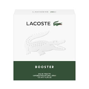 - Lacoste Booster, uma fragrância viva e dinâmica. Sinta o frescor dos cítricos combinado com as notas de fusão de mentol e lavanda contrastadas com o calor da madeira de cedro, difundindo um aroma aromático fougere para homens autênticos. Seu frasco moderno e elegante destaca os códigos icônicos da marca com o emblema do crocodilo gravado no vidro.