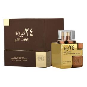 Spray de perfume Lattafa 24 quilates Pure Gold para unissex de 3,4 onças — CERCA DE 24 QUILATES DE OURO: um perfume oriental com uma combinação clássica de Oudh, rosas e baunilha. No entanto, o perfume se destaca da multidão porque consegue combinar habilmente tons suaves com fragrâncias escuras e dominantes. 24 quilates Pure Gold não é uma fragrância leve, mas um poderoso perfume attar árabe que se destaca por sua longa vida útil. Embora seja excelente como perfume unissex, preferimos atribuí-lo ao lado masculino - NOTAS PRINCIPAIS: madeira de ágar (oud), açafrão e canela - NOTAS MÉDIAS: rosa e sândalo - NOTAS DE BASE: incenso, âmbar, couro, almíscar e baunilha