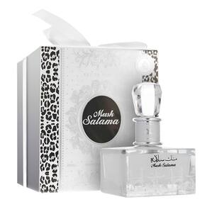 Lattafa Máscara Salama para Eau de Parfum Spray unissex, 100 ml - Salama de almíscar da Lattafa é uma fragrância aquática aromática para mulheres e homens - Notas principais: Frutas, almíscar branco - Notas médias: âmbar, almíscar branco - Notas de base: madeira, couro, oud, Moscou - Fragrância de longa duração