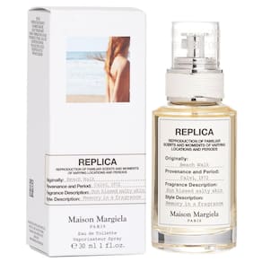 Composição floral Fruity Gourmand: Maison Margiela 'REPLICA' Beach Walk é uma mistura requintada de notas florais, frutadas e gourmand que cria uma experiência aromática refrescante e indulgente.
