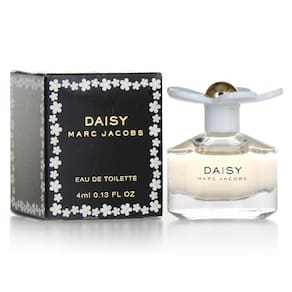 Características principais -------------------- 1. Aroma floral elegante: Marc Jacobs Daisy oferece uma mistura refrescante de morangos silvestres, folhas de violeta e toranja vermelha rubi, oferecendo uma fragrância encantadora e jovem, perfeita para uso diário. 2. Frescura duradoura: esta fórmula de eau de toilette garante um aroma duradouro que mantém você se sentindo fresco durante todo o dia. 3. Tamanho compacto: O tamanho de 4 ml é perfeito para uso em qualquer lugar, cabendo facilmente em sua bolsa ou mala de viagem. 4. Design icônico: O frasco extravagante apresenta uma tampa de margarida exclusiva, refletindo o espírito divertido e vibrante da fragrância. 5. Versátil e atemporal: adequada para várias ocasiões, Daisy é uma fragrância que combina com o uso diurno e noturno, atraindo mulheres de todas as idades. Ficha técnica -------------------- - Marca: Marc Jacobs - Tipo de produto: Eau de Toilette - Tamanho: 4 ml (0,13 fl oz) - Tipo de fragrância: Floral Marc Jacobs Daisy captura a essência de um jardim floral iluminado pelo sol, convidando você a desfrutar de seu aroma encantador. Com suas notas de topo de toranja vermelha rubi cintilante e morango silvestre, essa fragrância traz instantaneamente uma sensação de alegria. À medida que se desenrola, o coração revela delicados toques florais de violeta e gardênia, criando um aroma elegante e macio. Ideal para a mulher moderna, Daisy é mais do que apenas um perfume; é uma experiência de beleza despreocupada e espontaneidade. Se você estiver indo para um brunch com amigos ou saindo à noite, esta fragrância deliciosa o acompanhará com sofisticação e charme. Aprecie o perfil leve e revigorante de Marc Jacobs Daisy, projetado para deixar uma impressão duradoura.