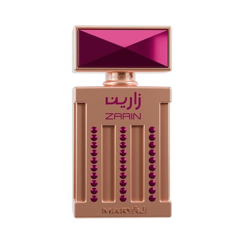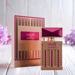 - Notas médias florais: no centro, Maryaj Zarin revela uma mistura de violeta, ameixa e caramelo, adicionando um toque doce e floral a essa colônia feminina e masculina.