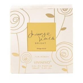 Vivinevo Mirage World Bright Women Parfum 100Ml 'Paty Parfumerie, o melhor da perfumaria mundial a um click você. ' Mirage World Bright é uma fragrância feminina da marca brasileira Vivinevo com arranjo de frutas florais. As notas iniciais de toranja, folhas violetas e morangos são substituídas pelas notas médias de jasmim, violeta e gardênia. No trem Mirage World Bright permanecem notas de baunilha, almíscar e madeira branca. Ean: 7899926301277