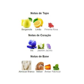 Notas de Topo: Bergamota, Limão e Pimenta Rosa.