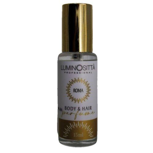Perfume Para Cabelo E Corpo Roma 15 Ml - Luminosittà Perfume ROMA 100 MLbr /br /Familia olfativa: ORIENTAL FLORALbr /br /Uma fragrância oriental floral que traz um encontro entre a sensualidade misteriosa e a beleza delicada da mulher. Suas notas de saída trazem o frescor da tangerina e da bergamota envoltas pelo toque angelical do gengibre. Suas notas de corpo são quentes e envolventes, combinando a tentação animálica e floral do jasmim com a doçura sofisticada da baunilha. Despertando todos os sentidos, seu fundo encerra esse ciclo trazendo toda a sensualidade da madeira cremosa do sândalo em uma dança hipnotizante com o calor ambarado do cashmere.Br /br /O Body & Hair Perfume Luminosittà, fragrância all-over para o cabelo e corpo, é ideal para quem deseja sentir uma experiência única que te cobre completamente por uma fragrancia sofisticada e envolvente. No cabelo: fórmula exclusiva não toma o cabelo pesado nem pegajoso, elimina odores indesejados e doa brilho e maciez No corpo: envolvida pela energia que Body & Hair Perfume fornece você se sentirá preparada para curtir a vida com mais leveza e sofisticação.Br /br /Modo de usar: Use por todo o corpo a qualquer hora. E no cabelo, pulverize à distancia de 30cm dos fios secos. Repita o uso sempre que achar necessário.Br /br /Cor: Brancobr /Formato: Spraybr /br /Advertencias: Evite contato com olhos Não aplique em pese irritada. Descontinue o uso em caso de sensibilização. Conserve o produto bem fechado e longo da luz e do calor excessivo. Mantenha fora do alcance de crianças br /br /Composição: Cyclopentasiloxane, Phenyl Tilmethicone, Partum Apha-Isomethybr /Lonone, Benzyl Benzoate, Benzyl Salicylate, Butylphenyl Methylpropional Ulial ,br /Cinnamyl Alcohol, Citral, Citronellol Coumann, Famesol Geraniol, Hexyl Cinnamal,br /Hydroxycitronelal, soeugenol, Limonene, Linalool Ean: 7890727902717