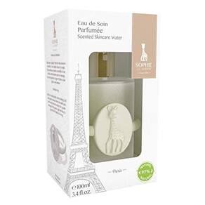 A fragrância perfeita para cochilos reparadores e aventuras saudáveis, a Eau de Soin Parfumee da Sophie la girafe é feita com ingredientes naturais seguros para uso em torno até mesmo das pessoas mais delicadas. Abre com notas suaves de pêssego, limão e frésia. Aromas frutados leves e florais se unem ao coração junto com ozônio e heliotrópio antes que uma base aconchegante de baunilha, flor de laranjeira, jasmim e almíscar assuma o controle para um acabamento ideal.