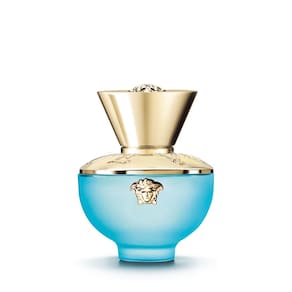 Spray EDT feminino Versace Dylan Turquoise Pour Femme de 1,7 onças — Lançado pela grife Versace — Notas principais — tangerina, limão primofiore e pimenta rosa Base: cedro, almíscar, madeira clara — Fragrância verdadeiramente feminina — Mantém você fresca o dia todo — É recomendado para uso diurno.
