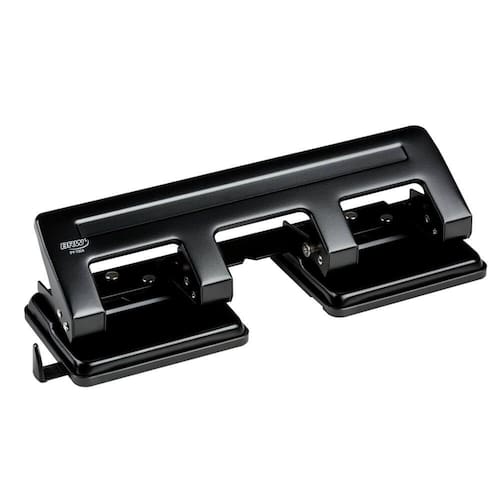 Perfurador de papel metálico de 4 furos, com capacidade para perfurar até 20 folhas de papel 75g/m2. Pinos perfuradores e molas em aço, maior resistência e durabilidade.
