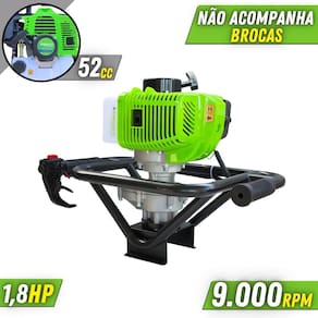 ESPECIFICAÇÕES TÉCNICAS: - Produto: Perfurador de Solo - Modelo: MPS52 - Refrigeração: Refrigerado a Ar - Cilindros: Monocilíndrico - Motor: Gasolina 2 Tempos - Cilindrada: 52cc (52cc) - Potência: 1,8HP - Sistema de Partida: Manual Retrátil - Rotação: Máxima 9.000 RPM - Na Lenta 3.000 RPM - Tanque de combustível: 980ml - Relação Engrenagens: 40:01:00 - Dimensão do Produto: 54cm x 35cm x 33cm - Peso do Produto sem a broca: 10kg